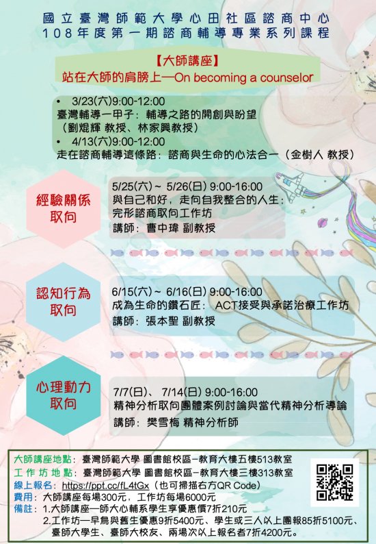 A_108心田社區諮商中心諮商輔導專業系列課程海報、