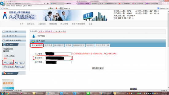 為使全國軍公教人員生活津貼申請暨稽核系統(AC)之家屬資料與人力資源管理資訊為系統(webHR)之表16家屬資料(含稱謂、姓名及身份證統一編號)正確對應,請本校公務人員透過個人資料服務網(MyData)就其個人資料進行檢視、比對與增刪校正,請查照。