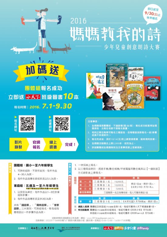 | 四、 | 欲參更多活動詳細資訊,請逕至活動官網http://www.2016readapoem.com.tw查詢。 |