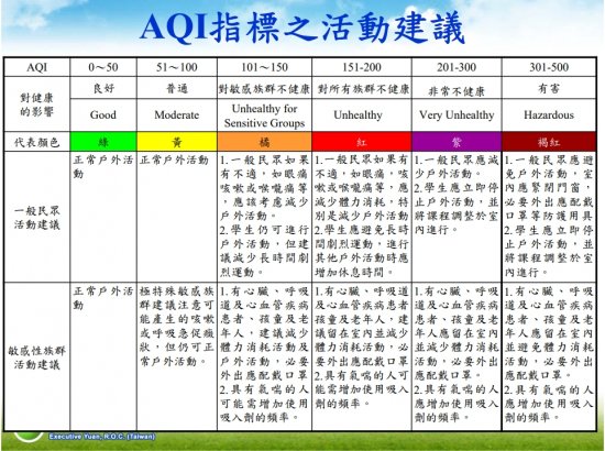 • 於連假或寒暑假期間,倘有幼兒園辦理相關營隊或戶外活動者,亦請各主辦單位務必留意空氣品質變化,做好防護及應變措施。