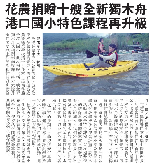 yes港口國小特色課程再升級 花蓮高農愛心移撥獨木舟– 更生新聞網 link to https://old.ksnews.com.tw/v2024052007/(ksnews.com.tw)