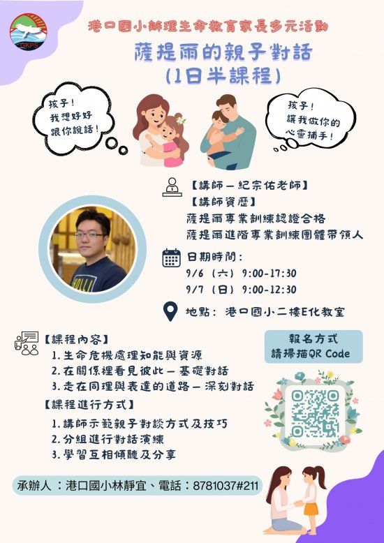 港口國小辦理薩提爾親子對話工作坊研習~歡迎家長帶孩子踴躍參加喔!