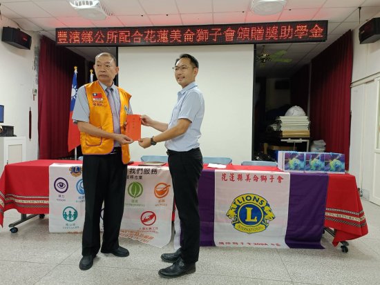 1140916感恩 國際獅子會花蓮美侖獅子會會長陳朝兆率領全體獅友捐贈本鄉學子獅子會獎助金