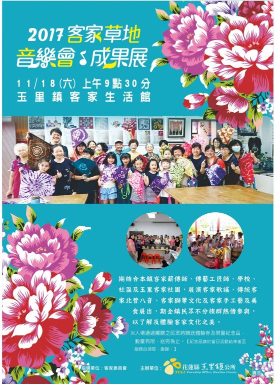 | 一、 | 旨揭活動內容計有:「客家歌舞表演」、「闖關活動領體驗券」、「客家市集」、「研習課程成果展」。 |