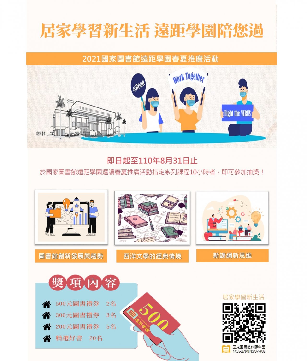 三、 學員於本活動截止前,選讀並完成本次推廣之課程 10 小時以上者,除可獲得公務人員終身學習時數(或教師研習時數)外,將可參加抽獎。
