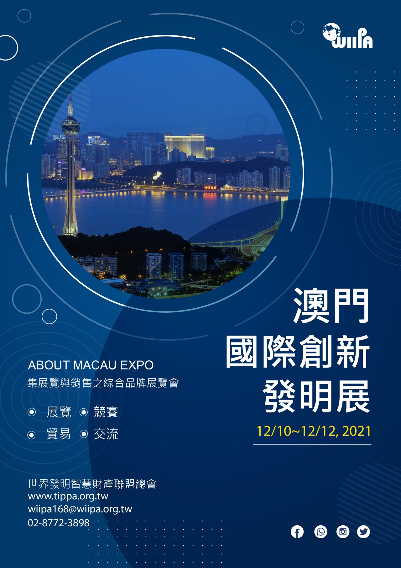 一、 「澳門國際創新發明展」是亞洲首屈一指集展覽、銷售之綜合品牌展覽會。主辦單位除了維持展覽高品質之外,協助發明人與當地企業家會面,並透過媒體報章雜誌於港、中、澳大量宣傳,提高發明品知名度及廣大的商機。