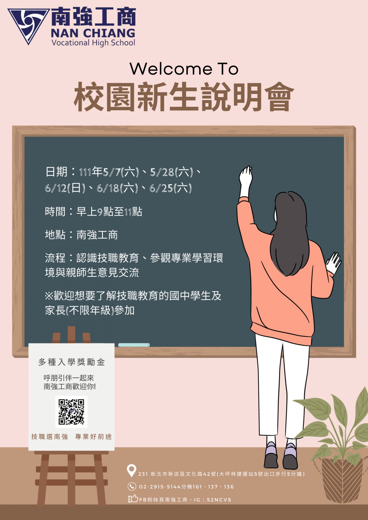 | (三) | 地點:南強工商:新北市新店區文化路 42 號。 |
