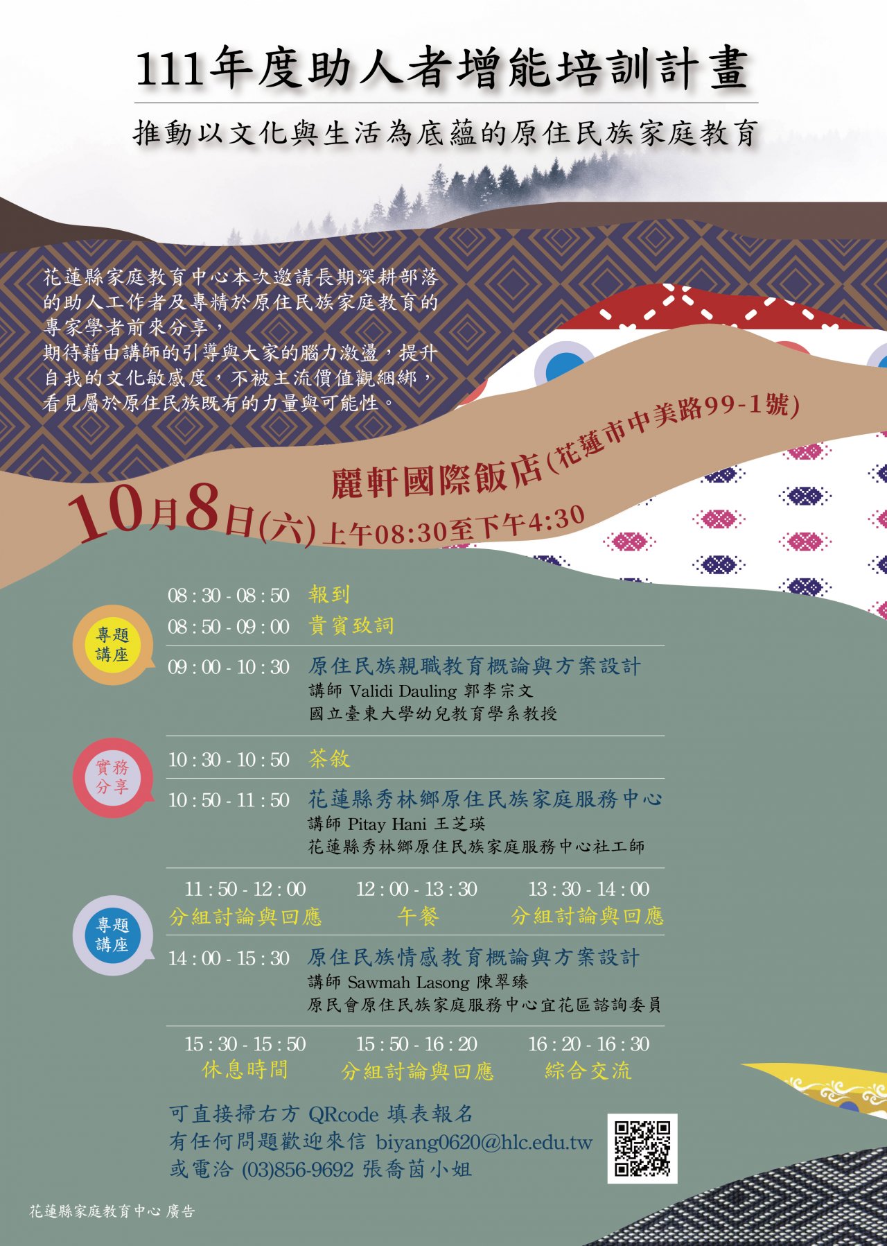 一、課程日期: 111 年 10 月 8 日(六)上午 8 時 30 分至下午 4 時 30 分