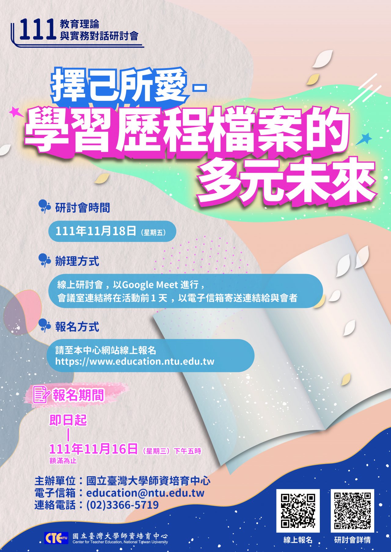 四、 報名時間:即日起至 111 年 11 月 16 日(星期三)下午 5 時截止。