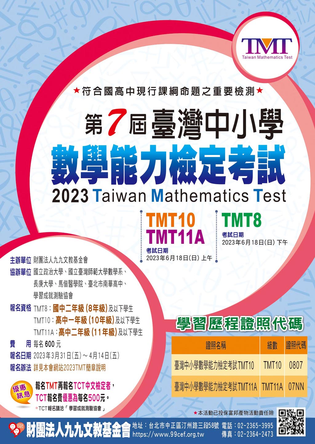 | 四、 | 報名費用每名學生 600 元。為幫助(中)低收入戶同學,本會將補助每名學生免收工本費參加本次測驗,計 200 個名額,額滿即不再受理報名。申請辦法請參閱本會網站。 |