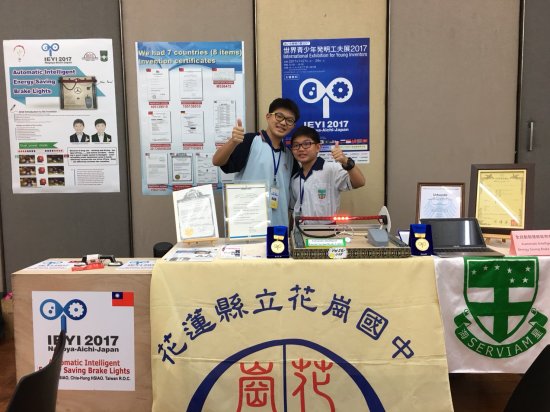 2017 年 IEYI 世界青少年發明展台灣榮獲 7 面金牌,本校獲得金牌作品為全自動智慧節能煞車燈,目前已申請 7 國專利,