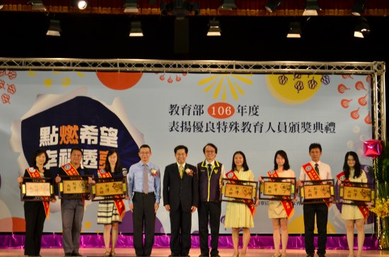 榮獲表揚之優良教師,多年來服務於特殊教育界,秉持對教育之熱忱,無怨無悔,犧牲奉獻,在特殊教育教學、學生輔導、教育研究及行政工作等各方面等,均有具體事蹟及卓越成效,他們在工作上散播教育愛和犧牲奉獻的精神,引燃特教的希望之火,成為特殊教育工作者的模範。教育部為激勵特殊教育人員之工作士氣及熱忱,並感謝優良特殊教育人員辛勞與無私奉獻,特於 106 年 9 月 25 日(星期一)上午 10 時假國立臺南家齊高級中等學校舉行表揚優良特殊教育人員頒獎典禮,由教育部潘文忠部長親自主持頒獎。