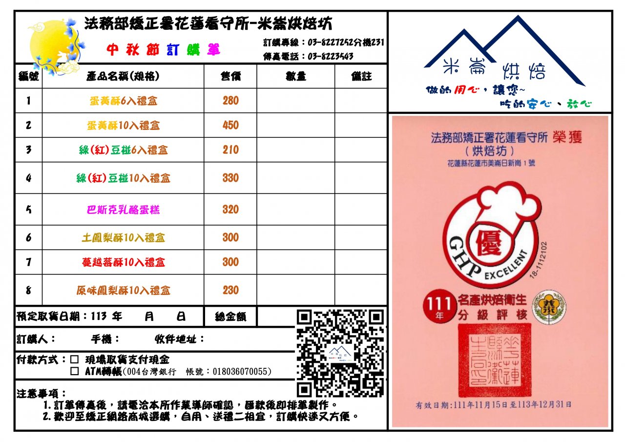 中秋佳節即將來臨,檢送本所自營作業食品科產品型錄及訂購單各 1 份,敬請貴機關與同仁踴躍訂購,並惠予張貼公告,請查照。