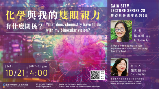 一、 | 葉亦帆博士畢業自倫敦大學學院神經科學學系,並在牛津大學獲得博士學位,她利用非入侵性的磁共振成像研究雙眼視覺的注意力調節。在博士後研究中,她致力於了解功能性典範及神經化學,並透過磁共振波譜測量,研究視覺感知。在2020年,葉博士獲頒王家學會Dorothy Hodgkin研究獎,並在此獎助下,在惠康中心(Wellcome Centre)納菲爾德臨床神經科學系(Nuffield Department of Clinical Neurosciences)成立她在綜合神經影像學的研究計畫。她的研究聚焦在人類雙眼視覺系統的可塑性及相關的疾病。 |