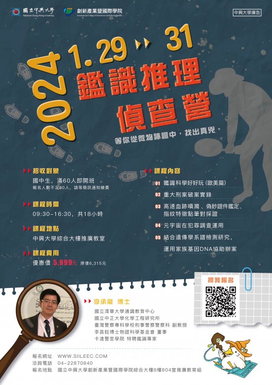 | (五) | 聯絡窗口:本校創新產業暨國際學院推廣教育組,電話(04)22870840,詳情請參簡章與海報。 |
