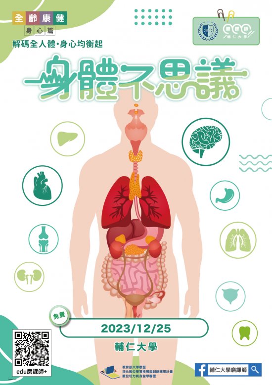 二、「身體不思議」由該校醫學系王霈教授授課,以人體器官系統為課程主軸,捨棄傳統講述模式,以主題式碎片化的敘事方式,傳遞人體知識的脈絡,深入淺出地建立人體醫學的常識。