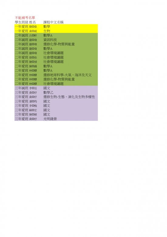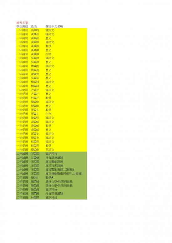 備註:補考資訊科技與生涯規劃的同學,請至電腦教室。