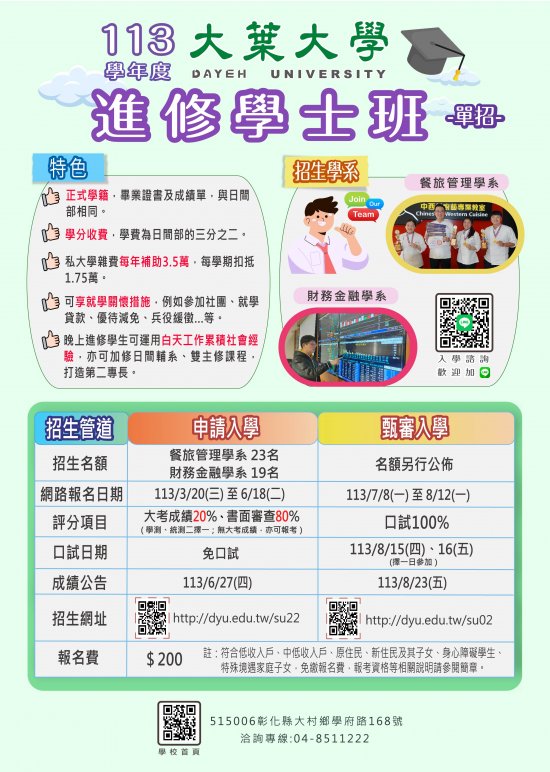 (二) | 報名網址:http://dyu.edu.tw/su22 |