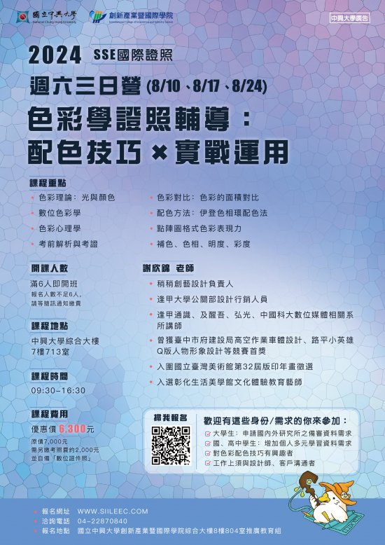 (三) | 色彩學證照輔導日期︰8月10日、8月17日、8月24日。 |