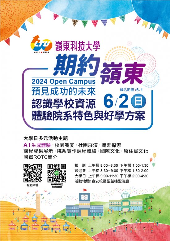 一、 | 為輔導高中職學生升學發展,並瞭解本校辦學理念,特舉辦旨揭活動,敬請協助轉知並鼓勵貴校學生(暨家長)蒞校參加(海報如附件)。 |