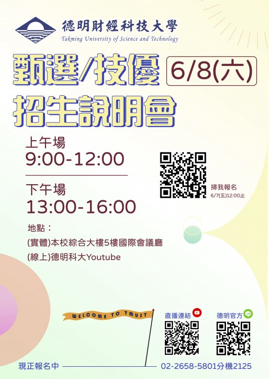 一、 | 活動目的:為使學生及家長能有機會進一步瞭解校系特色、教學資源,以及專業設備與卓越成果,進而促進學生對自身未來發展的適性揚才,特舉辦此活動。 |
