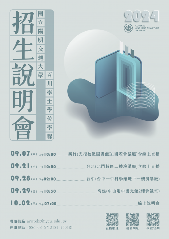(一) | 113年9月7日(星期六)上午10:00至12:00假本校新竹光復校區舉行並線上直播。 |