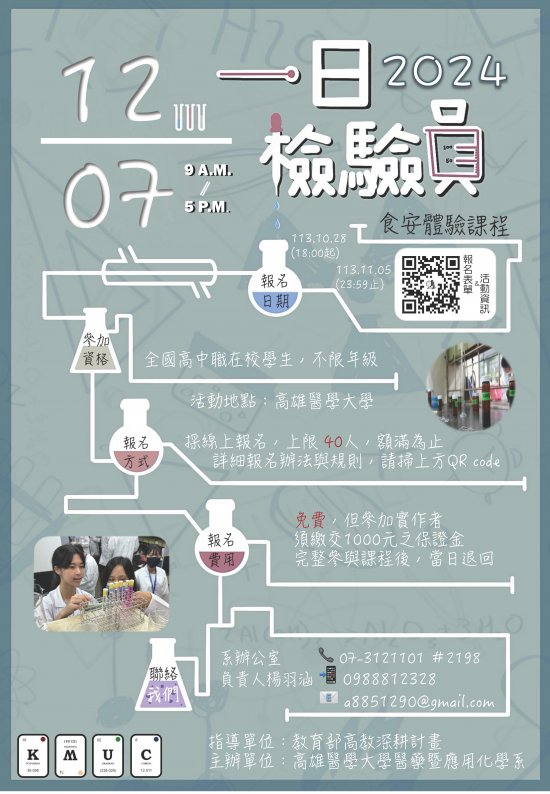 1) 高雄醫學大學辦理「一日檢驗員-高雄醫學大學食安體驗課程」海報.jpg