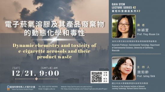 ☆國立中央大學辦理線上講座:「電子菸氣溶膠及其產品廢棄物的動態化學和毒性」