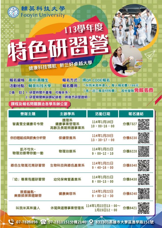 正修科技大學114年度「寒假探索冬令營」活動訊息