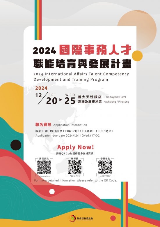 原住民族委員會(以下稱原委會)為培育具國際視野及國際 事務參與能力之青年人才,激發青年就業職能認識,並促 進國際原住民族青年間交流,辦理旨揭活動。