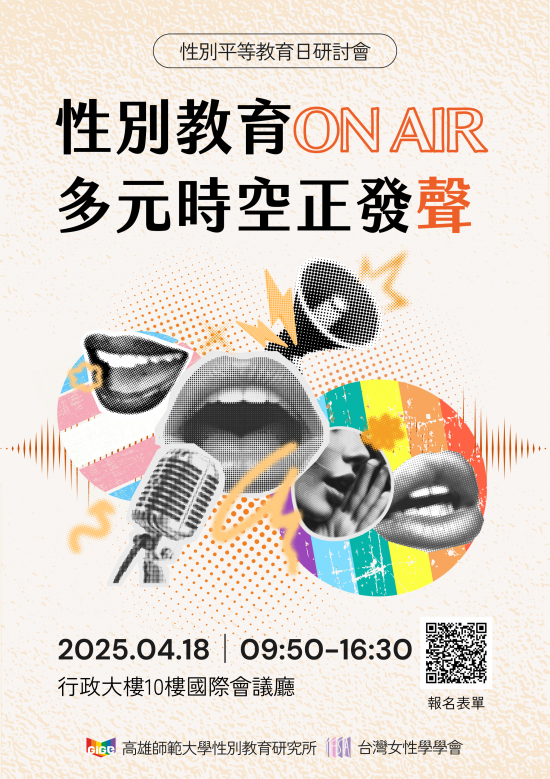 一、 | 本校性別教育研究所謹訂於114年4月18日(星期五),於國立高雄師範大學國際會議廳(高雄市苓雅區和平一路116號 行政大樓十樓)舉辦研討會活動。 |