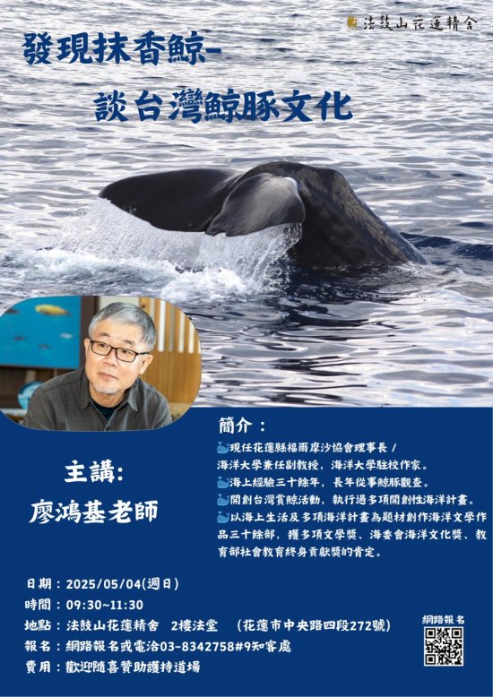這場講座由長期關注台灣海洋的海洋文學作家廖鴻基與大家探討鯨豚、海洋、保育等議題。