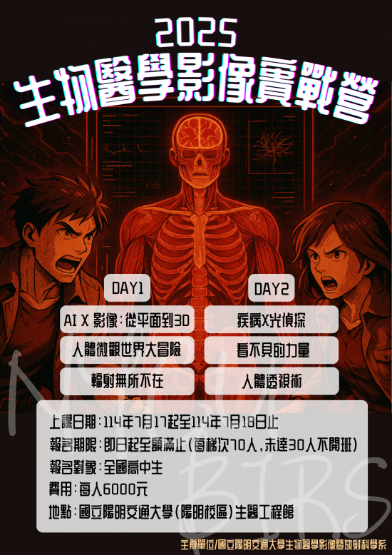 1) 國立陽明交通大學生物醫學工程學院生物醫學影像暨放射科學系辦理之「2025生物醫學影像實戰營」活動海報.png