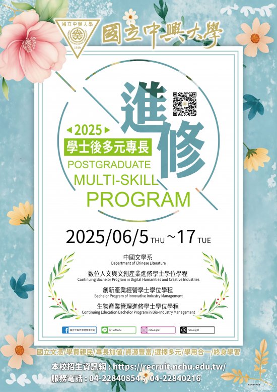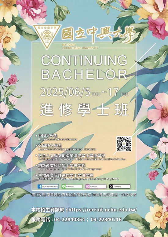 四、 相關資訊請詳見本校招生資訊網(https://recruit.nchu.edu.tw/)。