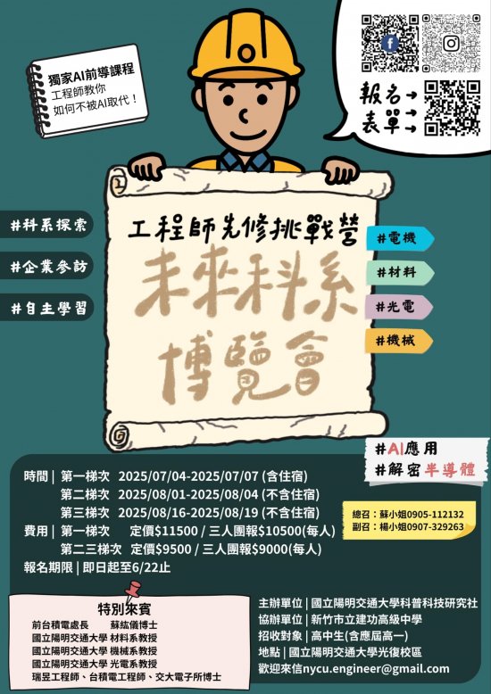 三、 | 隨文檢附營隊宣傳海報,有關活動相關事宜請逕洽主辦單位。 |