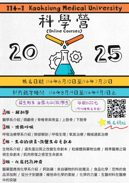 (五) | 每班報名費用為新臺幣600元,學生可自由選擇報名一班或多班。 |