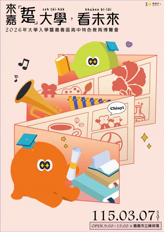 | 一、 | 為提供全國高中職學生及嘉義區國中學生多元升學資訊,本府訂於115年3月7日(週六)辦理「2026年大學入學暨嘉義區高中特色教育博覽會」。 |