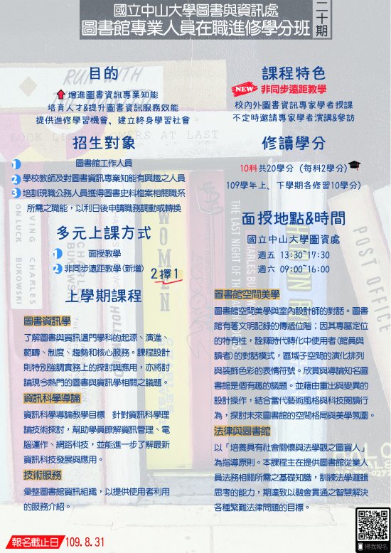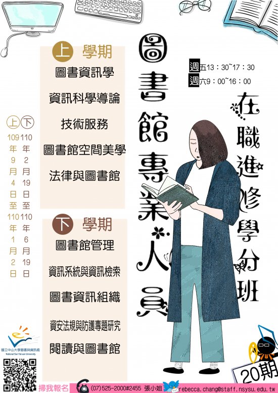 第20期圖書館專業人員在職進修學分班上學期招生簡章