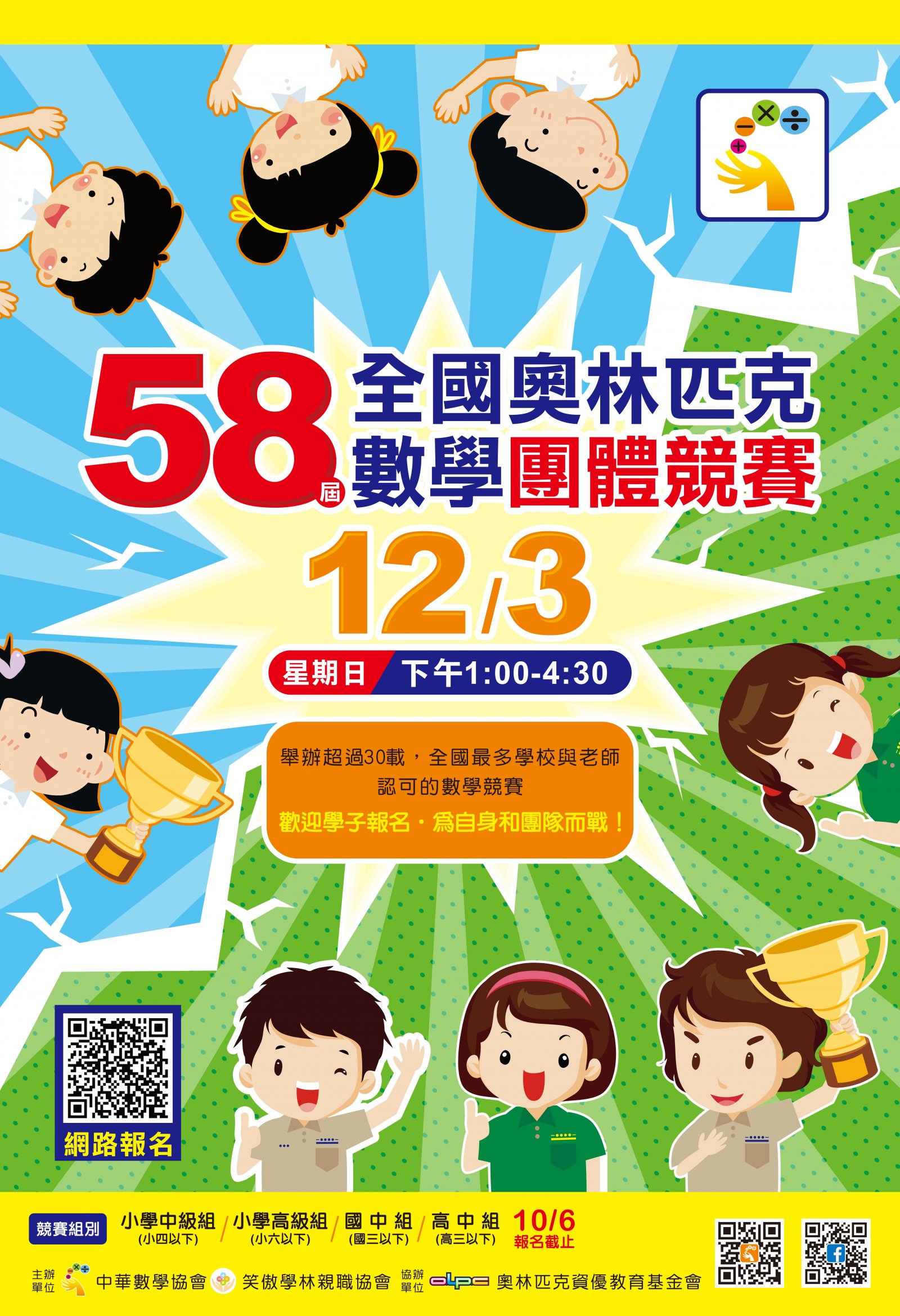 轉知訂於112年12月3日(日)舉辦 「第58屆全國奧林匹克數學團體競賽」