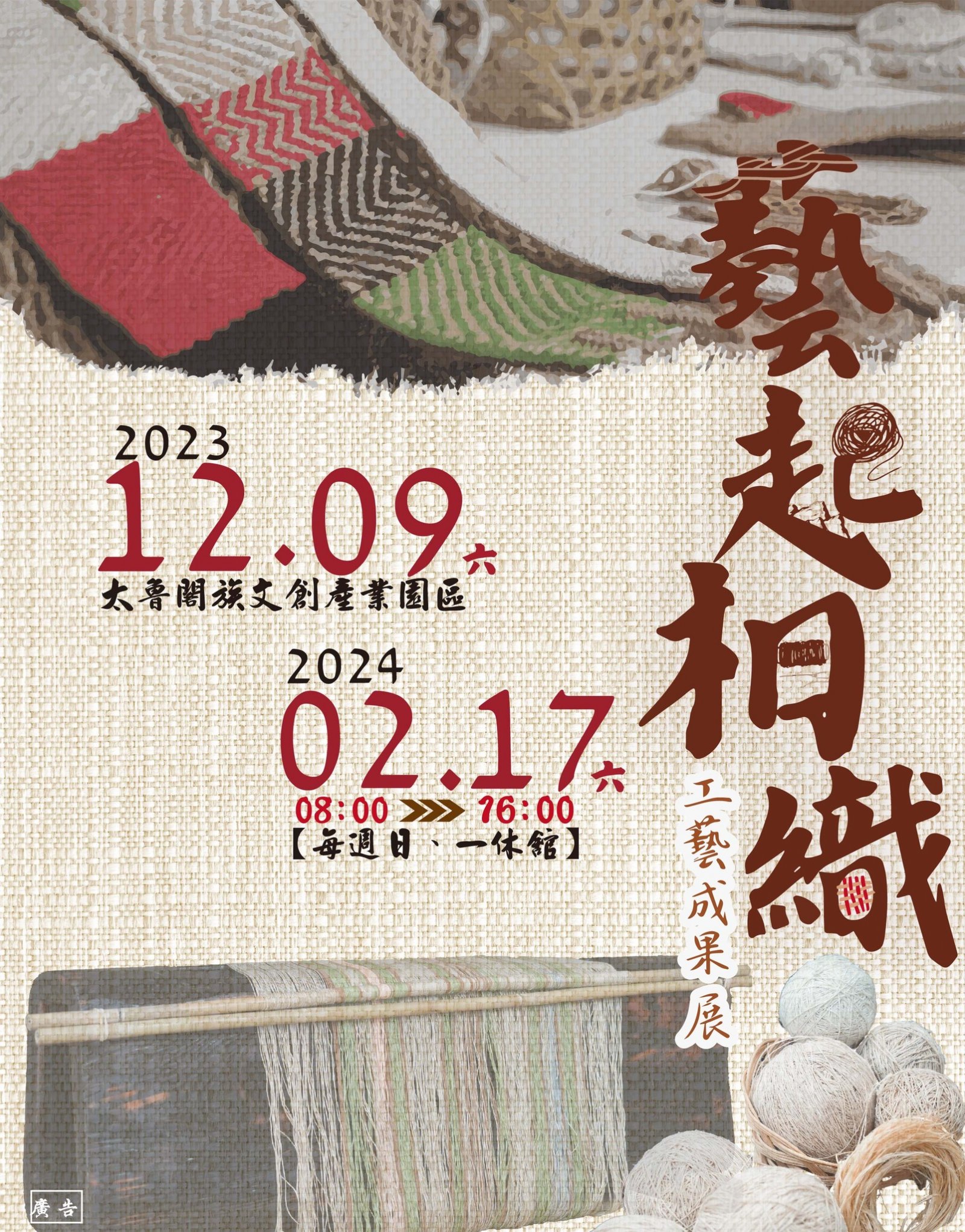 | 二、 | 展期:112年12月9日(星期六)至113年2月17日(星期六)止上午8時至下午4時(週日、一休館)。 |