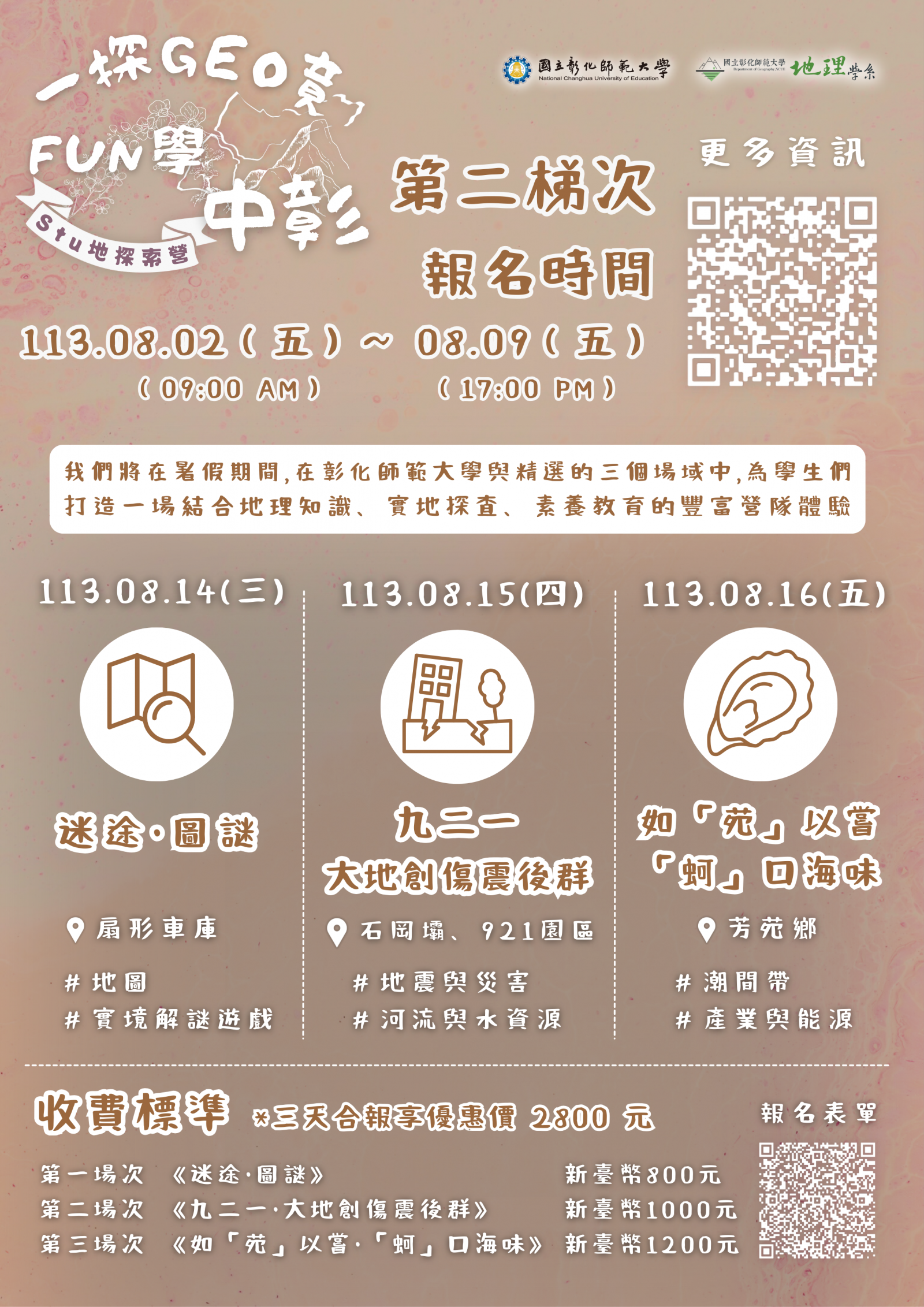 | (二) | 第二梯次:113年08月02日(五) 09:00至113年08月09日(五) 17:00(額滿為止) |