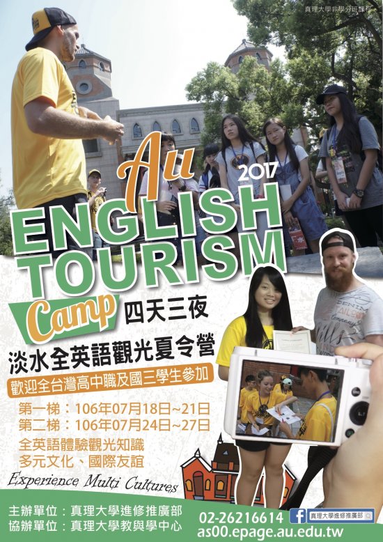 | 一、 | 營隊宗旨:認識跨文化的觀點,關心本土與國際的觀光發展,勇於溝通,積極進取,學習建立國際友誼,培養學生的國際化能力。 |
