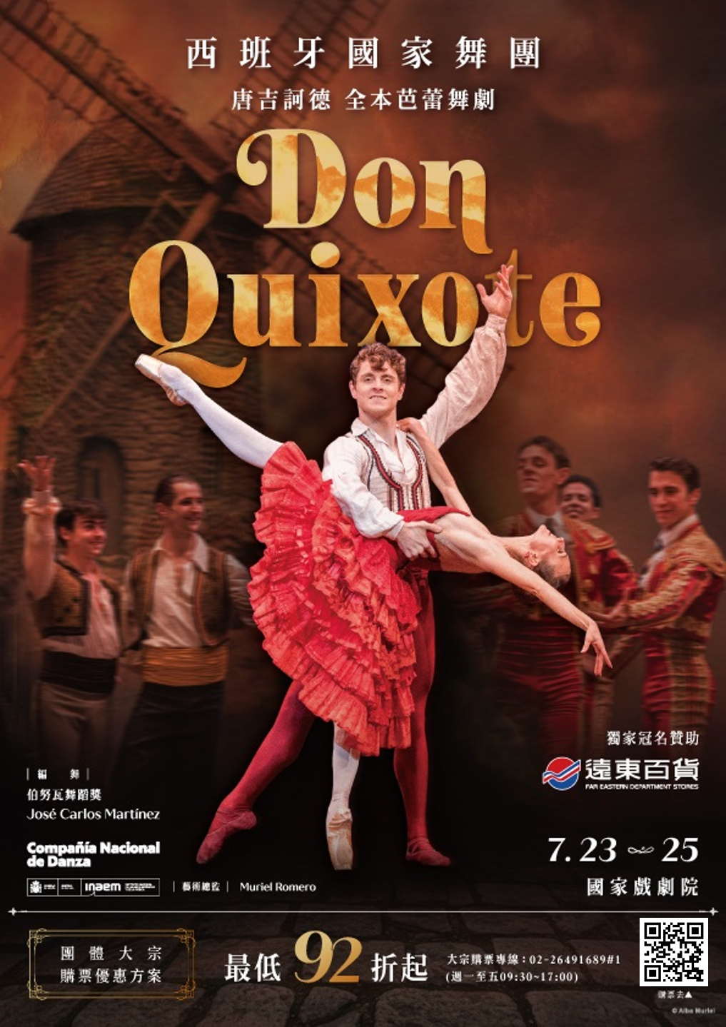 | (十) | 此次,由「遠百獨家呈獻西班牙國家舞團攜全本芭蕾舞劇《唐吉訶德》」來台,不僅是一場國際級芭蕾盛會,更是一場跨越文學、音樂與舞蹈的西班牙文化饗宴,帶領觀眾走進《唐吉訶德》內理想與愛情交織的奇幻世界。 |