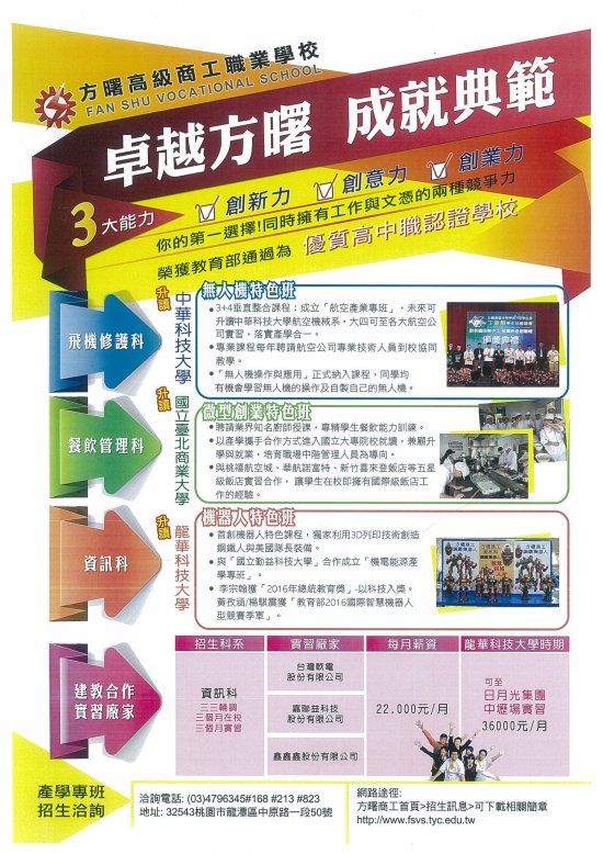 」、餐飲科「餐飲連鎖產業專班」 。本校資訊科畢業後與