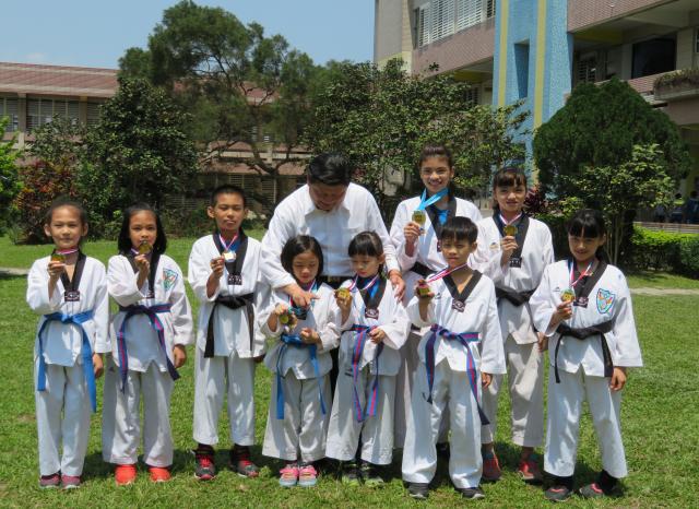 縣長蒞校訪視學校午餐食農-野菜教育。觀看野菜課程上課情形、到幼兒園與小朋友見面,並到低年級教室與小朋友共進午餐,餐後並與學校足球隊、跆拳道團小朋友一起合影留念。
