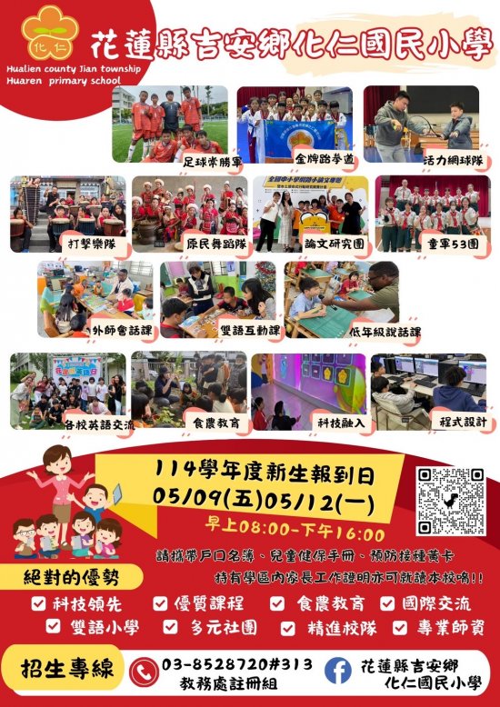 化仁國小註冊組 聯絡電話:03-8528720轉313
