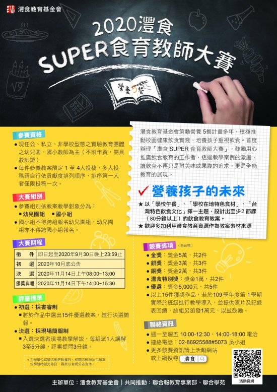 | 六、 | 檢附「2020灃食SUPER食育教師大賽」活動簡章與宣傳文宣各1份供參。 |