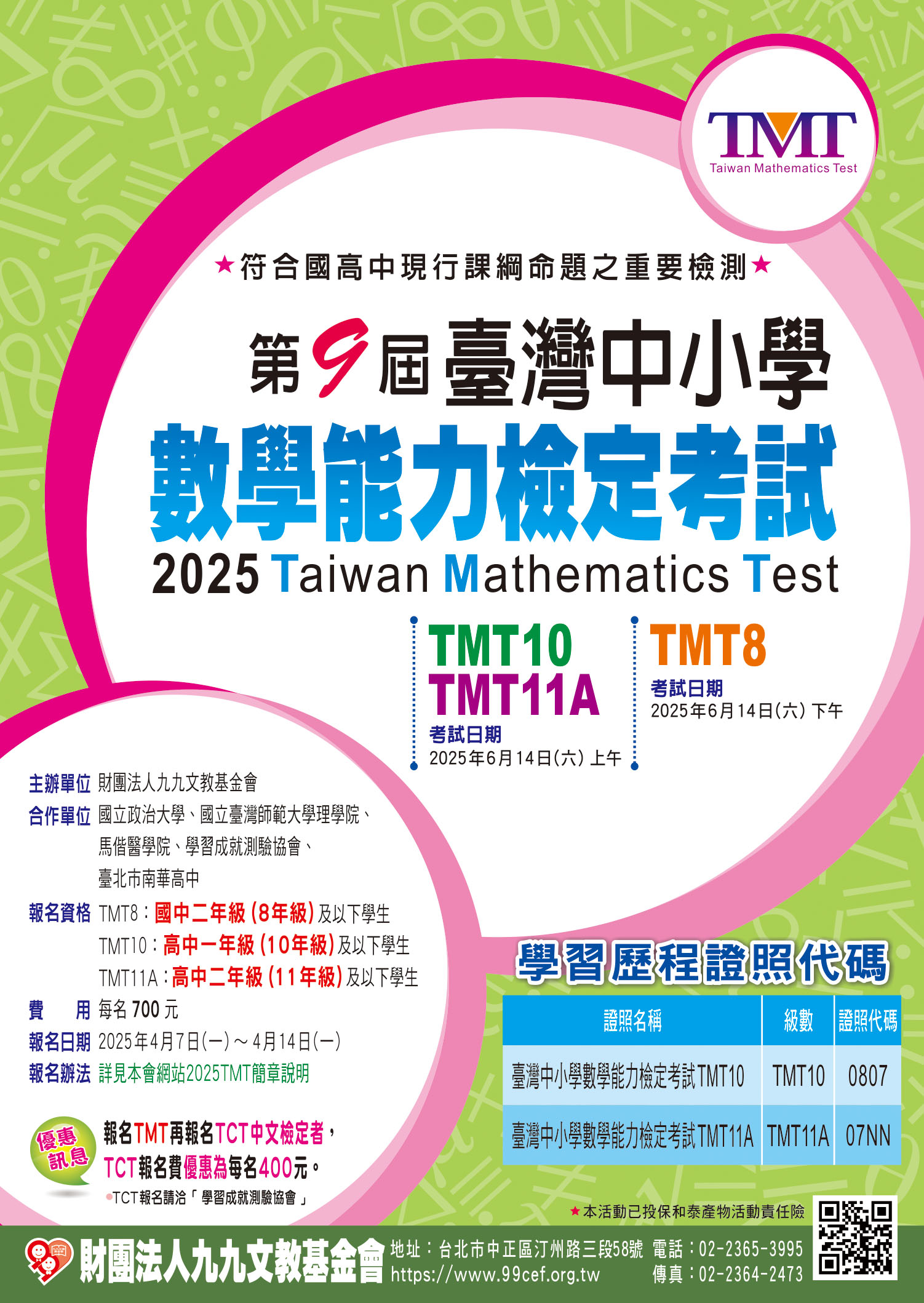 | (一) | TMT8 :全國 8 年級(國中二年級)以下(含)在學學 |