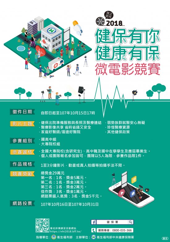 三、詳細報名資訊請參閱活動簡章(附件 1 )、海報(附件 2 )及活動網站(網址: https://nhi2018.bff.tw/)。