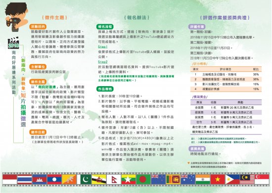 二、旨揭活動由行政院經貿談判辦公室主辦,公共電視執辦,希冀透過短片拍攝徵選激發創作能量,展現新南向成果,惠請